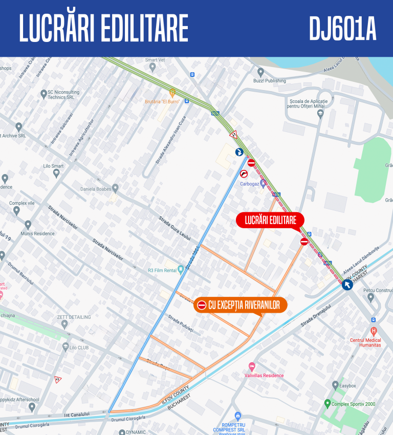 Vă informăm că aceste lucrări semnifică înlocuirea bordurilor, refacerea trotuarelor, frezarea asfaltului existent și turnarea unui nou covor asfaltic. Estimăm două săptămâni timpul de execuție al lucrărilor.
